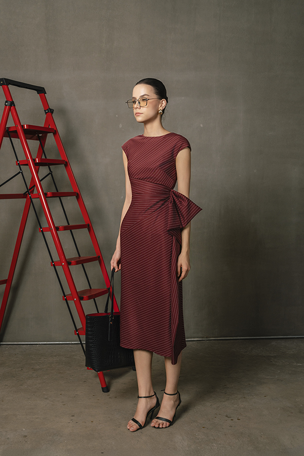 Matilda Maroon Midi Dress – Elegant Office to Evening Dress